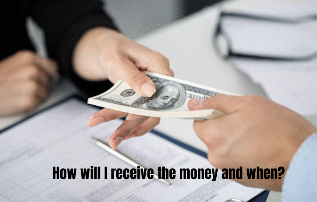 How will I receive the money and when?